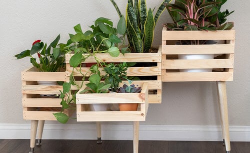 This DIY wood plant stand is easy to make, and you can use it to showcase small pots.