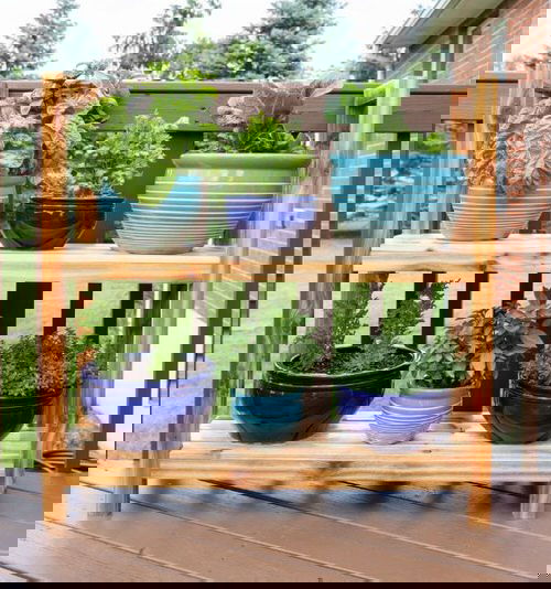 This plant shelf is a must-have if you want to keep all your outdoor plants organized.