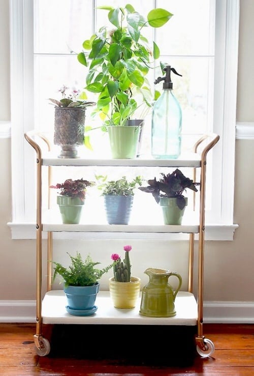 An old metal bar cart is all you need to make for a movable plant stand! Click here.