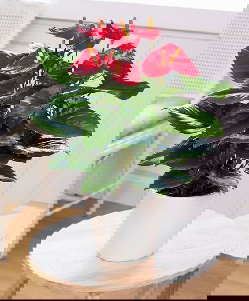 The waxy bracts of Flamingo lily, adorned in a bright shade of red creates an eye-catching contrast with its green foliage. It is one of the best houseplants for a girl s room!