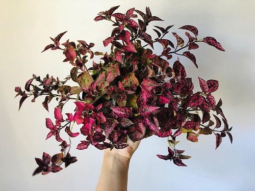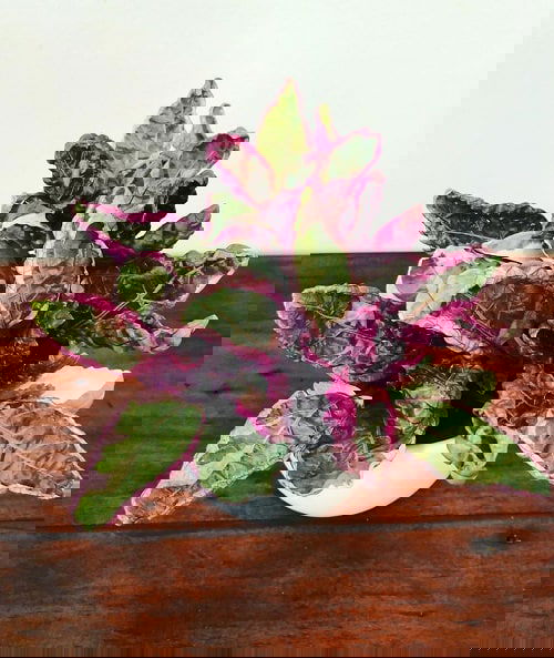 One of the most stunning specimens on the list, its rosy-pink foliage with deep green edges and purple undersides, can be an excellent addition to rooms.