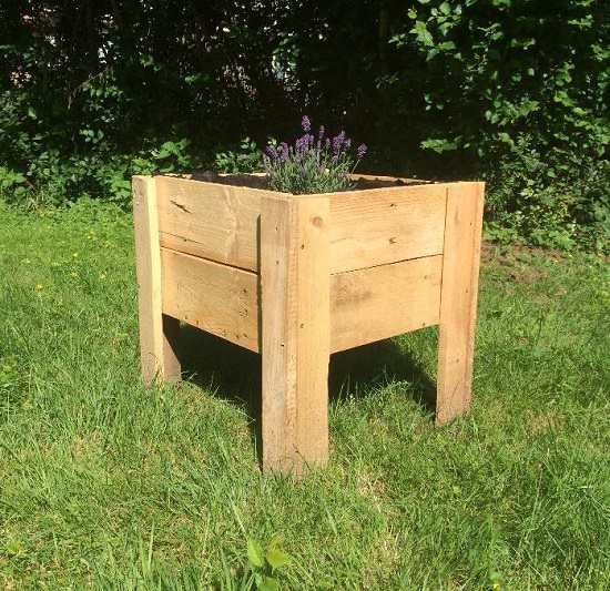 This is exactly a pallet planter, but cedarwood pickets transformed and given a pallet planter-like appearance. The how-to is here.