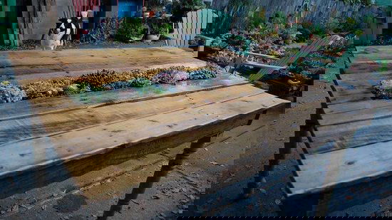 An outdoor table made out of pallets, and what s amazing is you can grow succulents in it. Get the step-by-step tutorial at 99pallets.
