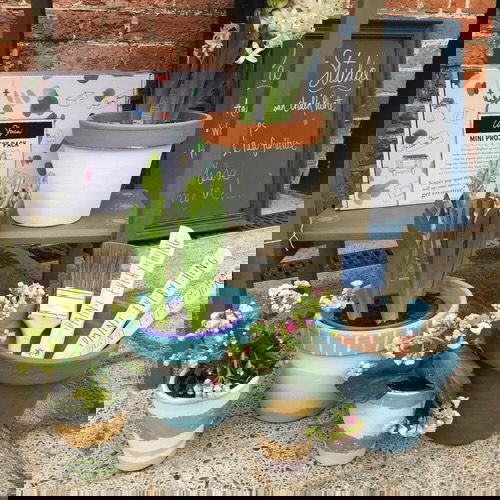 36. Cute Planters with Yellow and Blue Flowers