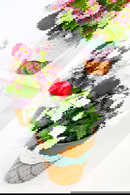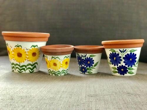 48. Hand Painted Terracotta Pots for Artificial Flowers