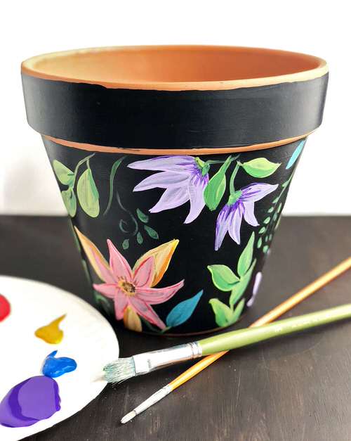 21. Hand-painted Flowers on a Black Pot