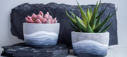 6. Cement Planters with Handmade Designs