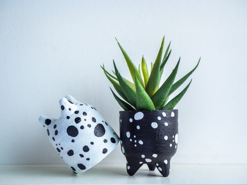 32. Black and White Polka Dot Pots for Succulents
