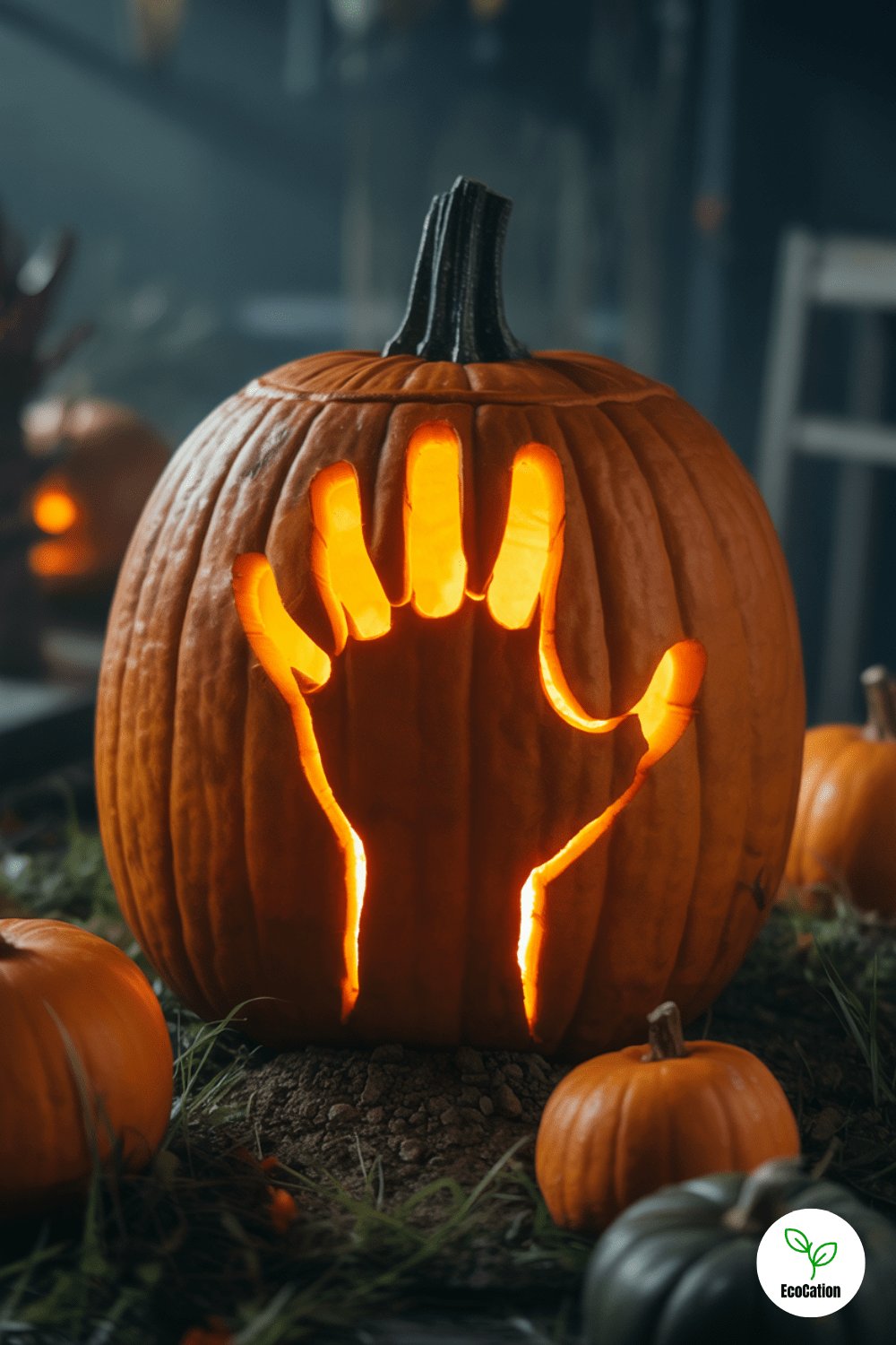Carve a skeletal hand clawing its way out of the pumpkin. Focus on finger spacing and broken nails to get that chilling look. Use shadows to your advantage this one s all about eerie vibes and horror movie feels.