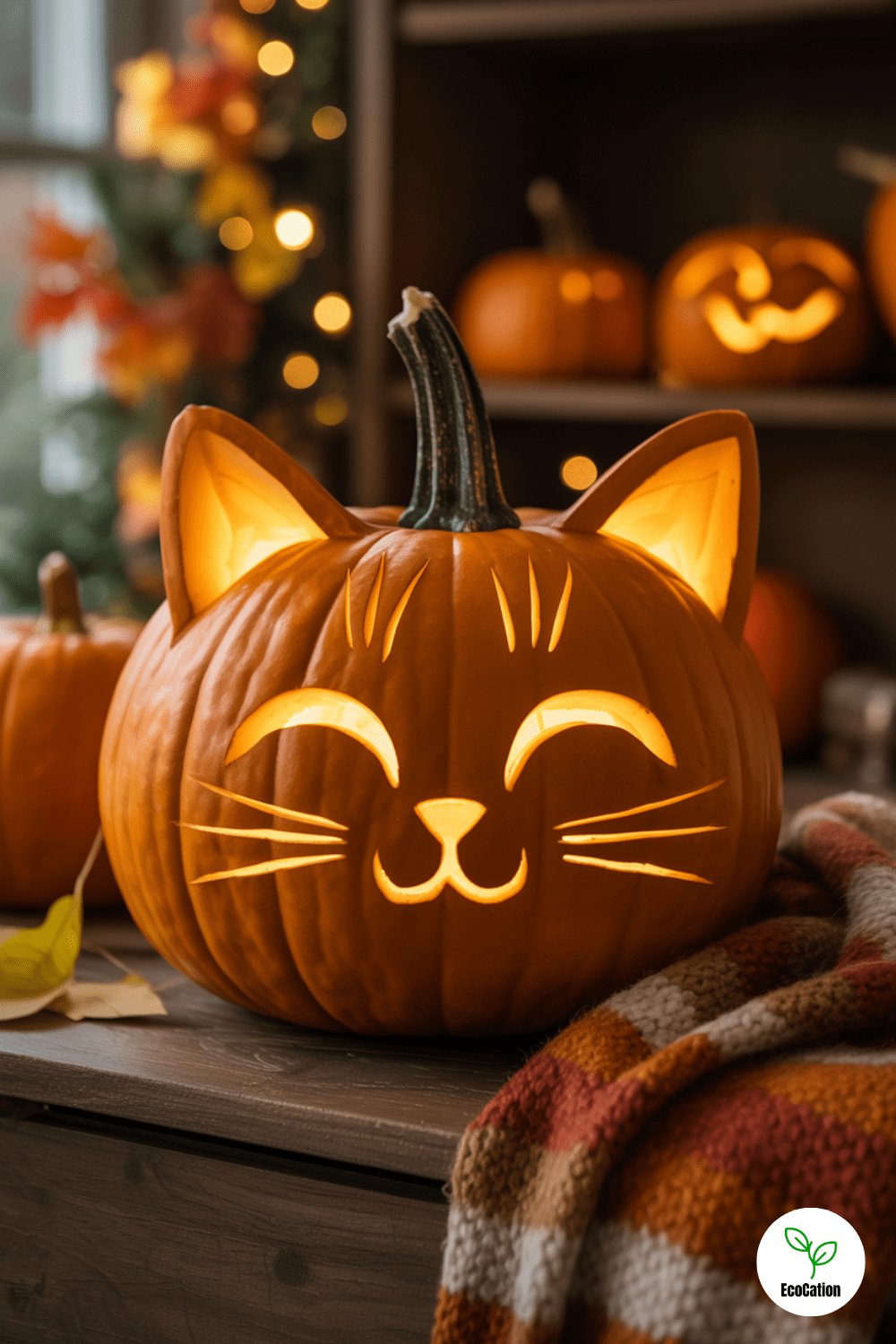 Love cats? Try carving a sitting cat silhouette complete with pointy ears and a curled tail. This sleek design looks best with clean edges, so use a fine knife. It s a purr-fect idea for pet lovers looking to add a creative twist to their porch.