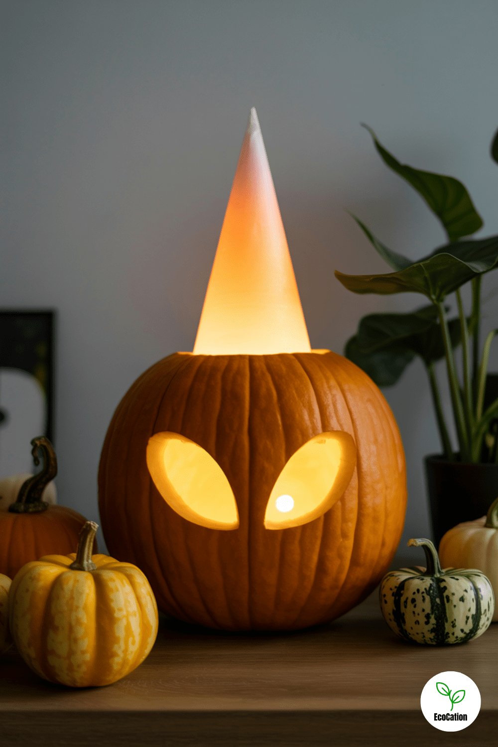 Carve a classic alien head into your pumpkin and shine an LED from inside upward like a spotlight. The result? A glowing alien ready for abduction. This idea is perfect for sci-fi fans who want something a bit unusual.