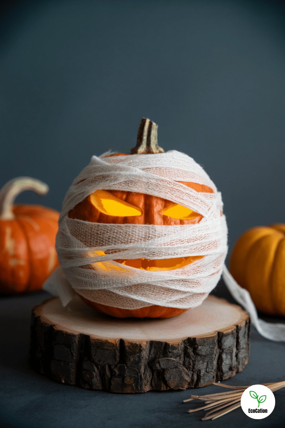 Wrap a small pumpkin in gauze, leaving just enough space to carve glowing eyes underneath. This idea is quick, kid-friendly, and adorable. Use tea lights or battery-powered candles for a safe glow behind the wraps.