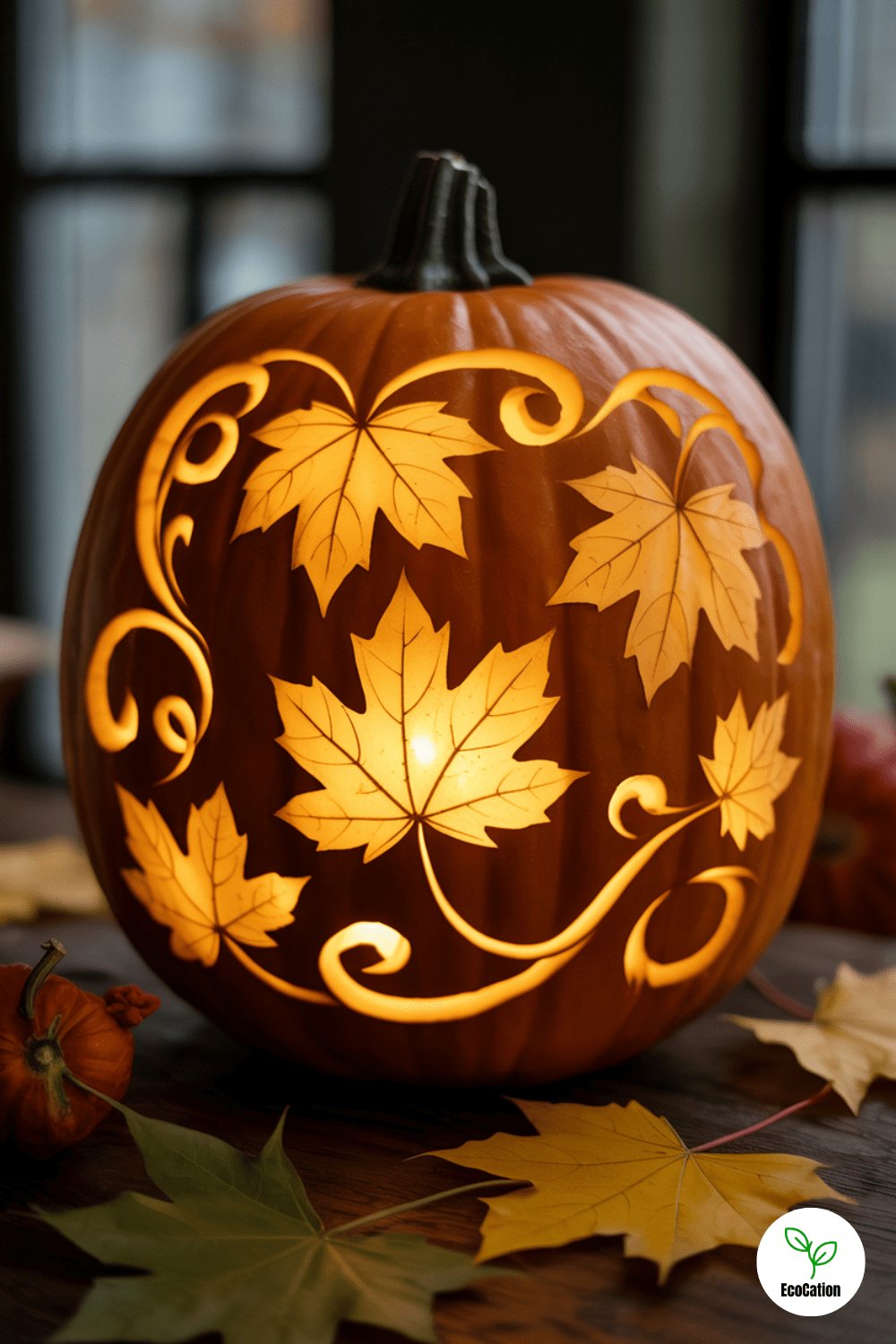 Celebrate the season with a swirling pattern of carved maple leaves. The secret is to layer the leaves at different angles and carve just deep enough for the veins to catch the light. It s a subtle yet stunning tribute to fall.