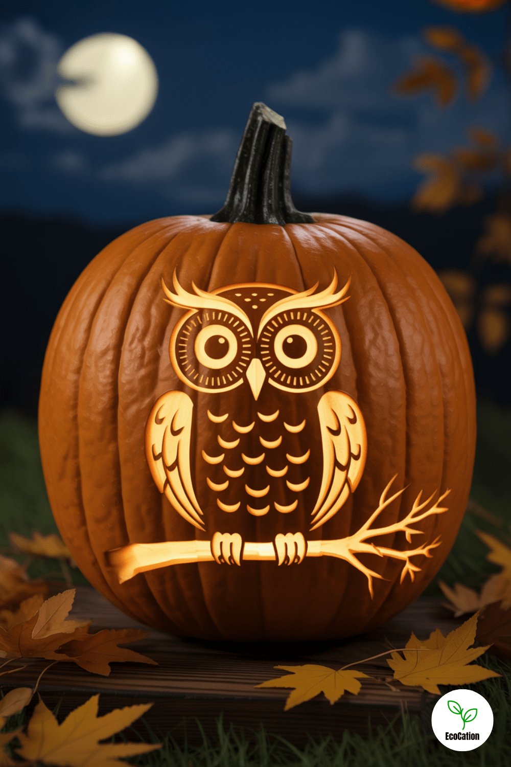 Carve an owl perched on a branch with big, round eyes watching the night. Feathers carved with textured strokes add extra realism. It s a wise choice for a fall porch centerpiece, especially when nestled among autumn leaves.
