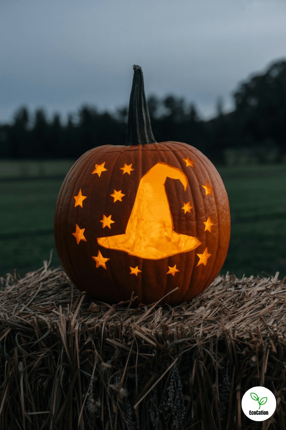 A witch s hat surrounded by stars makes for a magical design. Use a stencil for the hat to keep the lines sharp, and scatter small star cutouts around for extra sparkle. Top it off by placing your pumpkin on a hay bale for that witchy flair.