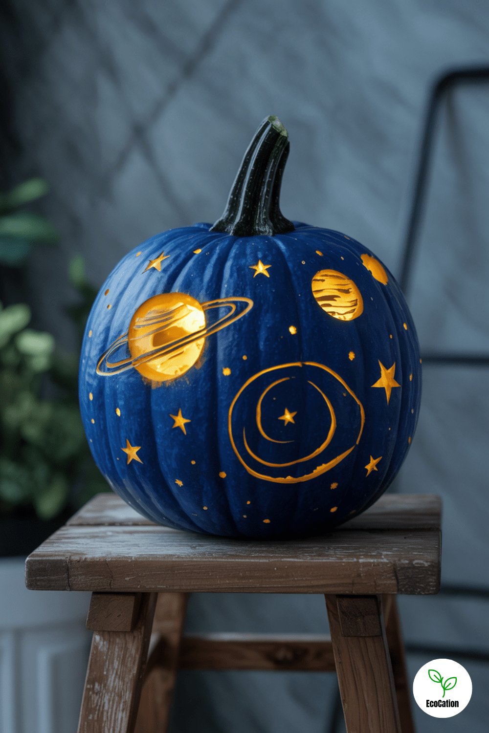 Paint your pumpkin a deep space blue before carving in planets and swirling stars. Insert a color-changing LED to mimic cosmic light. It s a dreamy, out-of-this-world idea that mixes paint and carving for maximum effect.