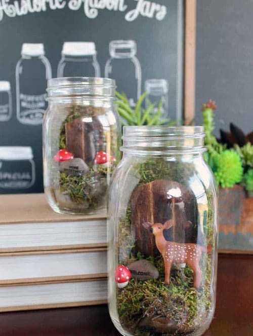 Some old mason jars, rocks, moss, miniature deer, and few other supplies are all you need for this DIY.