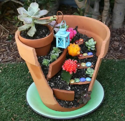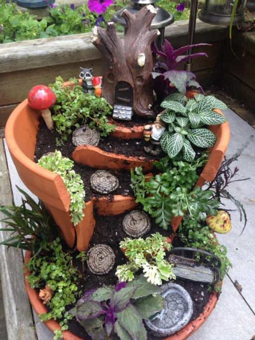 Don t throw away any unused, broken pot and use it to make a fairy garden.