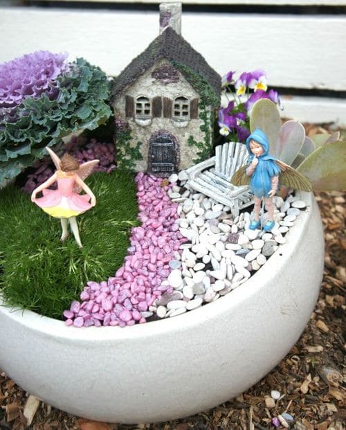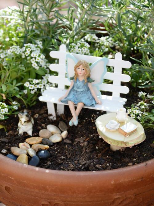 Check out this post where the blogger has made a cute fairy garden using miniature fairies and plants.