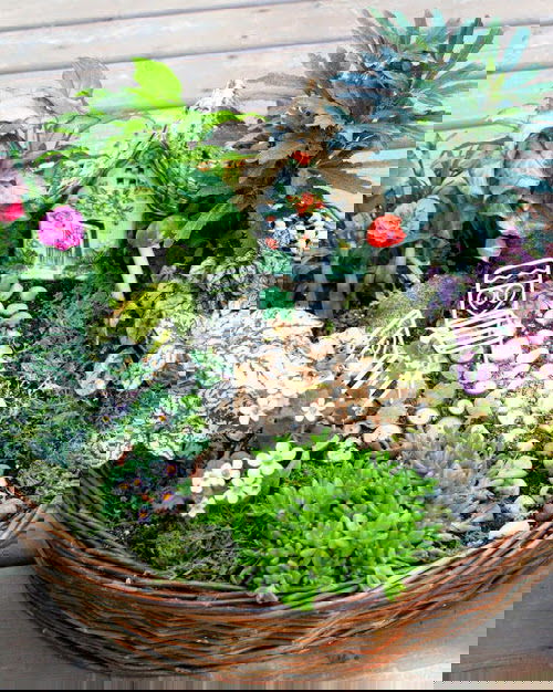 Here s a fun-to-make fairy garden using a shallow basket or container and other supplies.