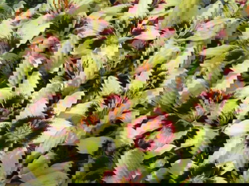 As the name suggests, Black Beauty is not black at all! The curled, cup-shaped, crimson flowers with green highlight look amazingly attractive. The red petals are mottled with raised papillae and matching anthers. It can reach up to 9 feet high with each stem bearing up to 150 flowers.