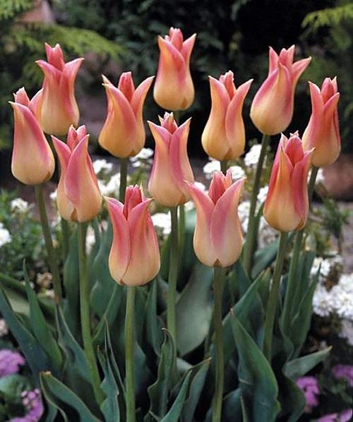 This early-flowering lily was developed in the Netherlands for container gardening. It offers upward-facing white flowers, mixed with pale pink.