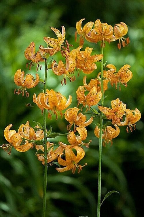Also known as martagons hansonii hybrids, they are distinguished by downward-facing Turk s cap-like small flowers, with leaf whorls on 3-6 feet tall stems. They start flowering at the beginning of summer with an unpleasant fragrance. This hybrid variety performs well in the shade and is available in orange, white, pink, yellow, lavender, and maroon hues splashed with spots.