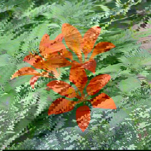 The overlapping funnel-shaped flowers have orange petals with spots. This variety was discovered by botanist Asa Gray. It is one of the best Types of Lilies you can grow!