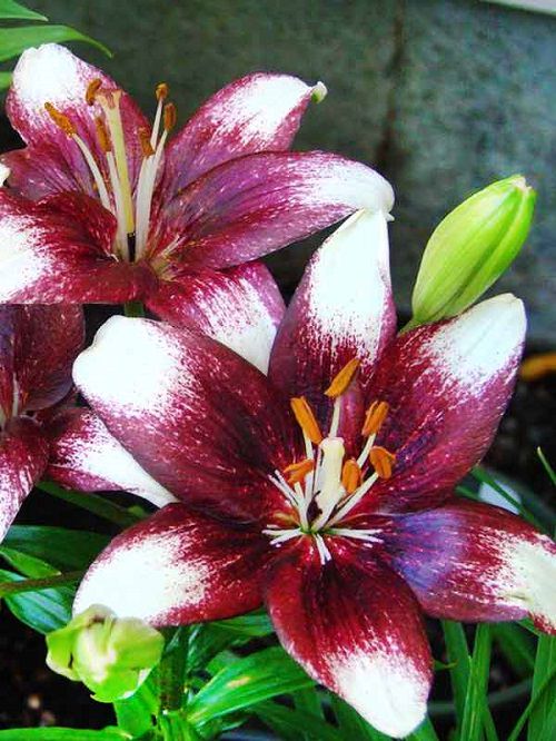 This two-toned lily can be an excellent addition to your garden. It shows off maroon-red flowers with white tips. It blossoms from late spring to early summer.