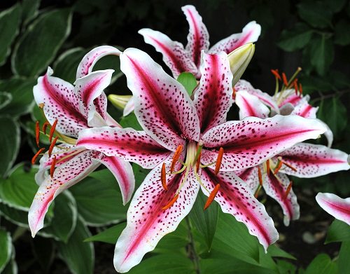 Also known as Alstroemeria, this variety is a cross between L.auratum and L. speciosum. It is considered as one of the most popular lilies due to the ornamental and fragrant flowers. The plant produces pink flowers with red-white undertones and spots all over the petal.
