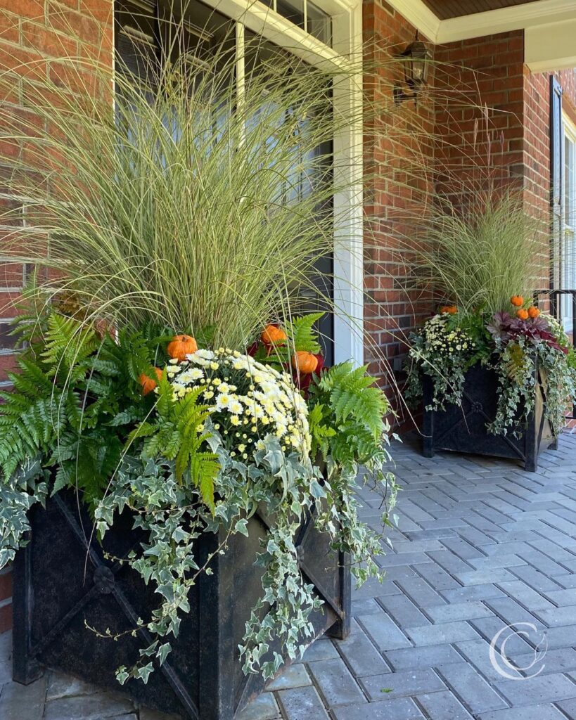If you want your display to transition naturally into winter, think about incorporating evergreens like dwarf boxwoods or small conifers alongside your fall selections.
