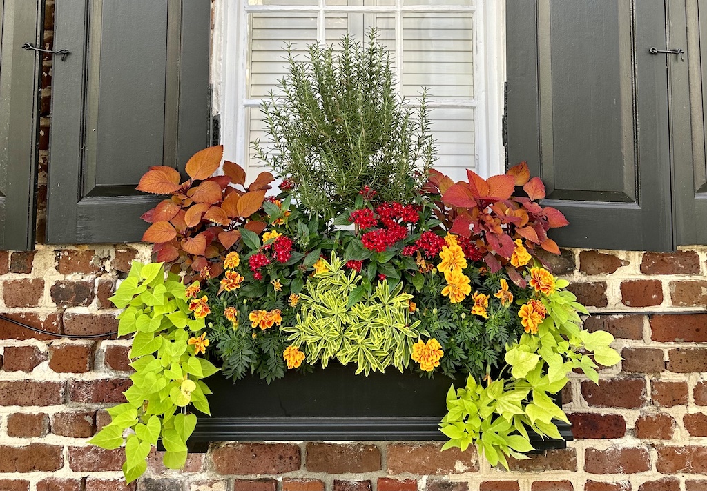 The beauty of fall window boxes is that many choices will carry you right up to early winter.