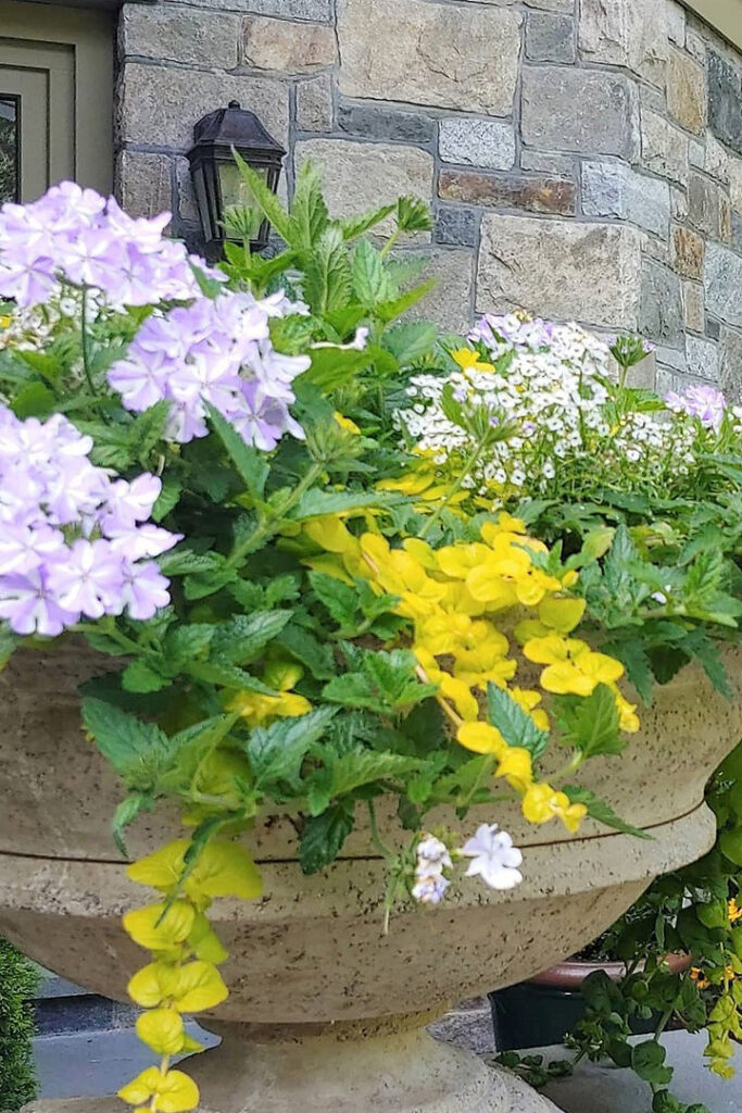 I cant skip the window boxestheyre tiny gardens that frame your home with color. I saw one overflowing with geraniums, white bacopa, and purple salvia. The contrast was stunning.