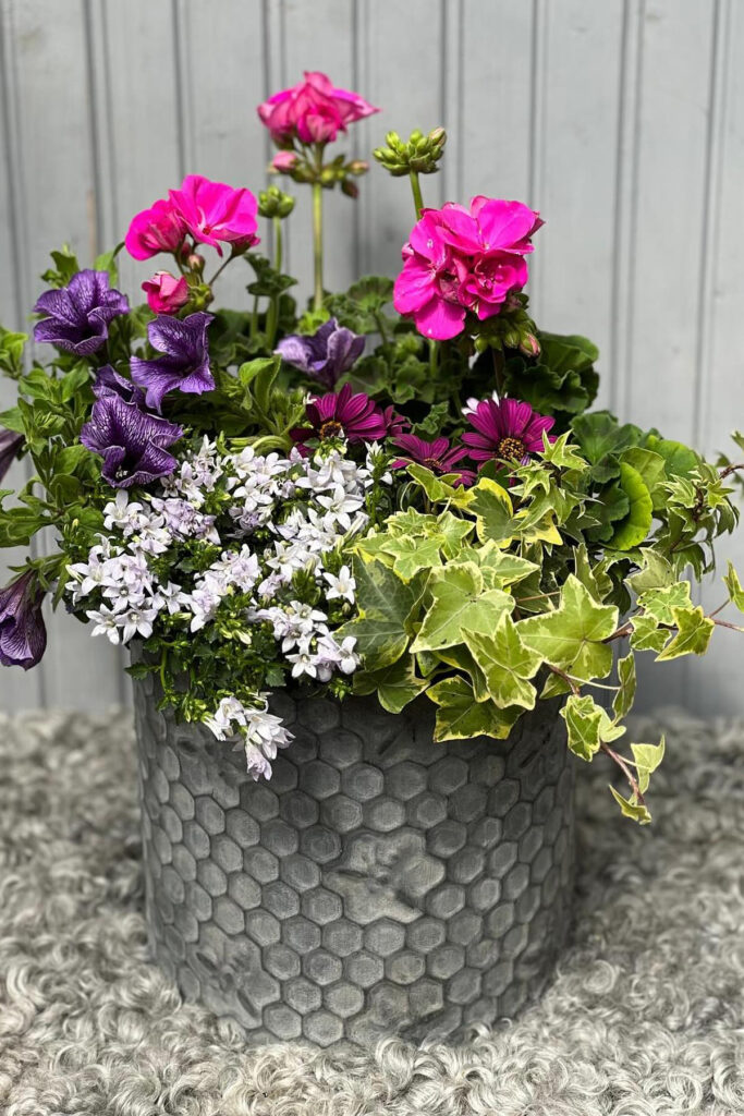 Rosemary and lavender are naturals in containers, and they pair beautifully with trailing flowers or compact blooms like marigolds.