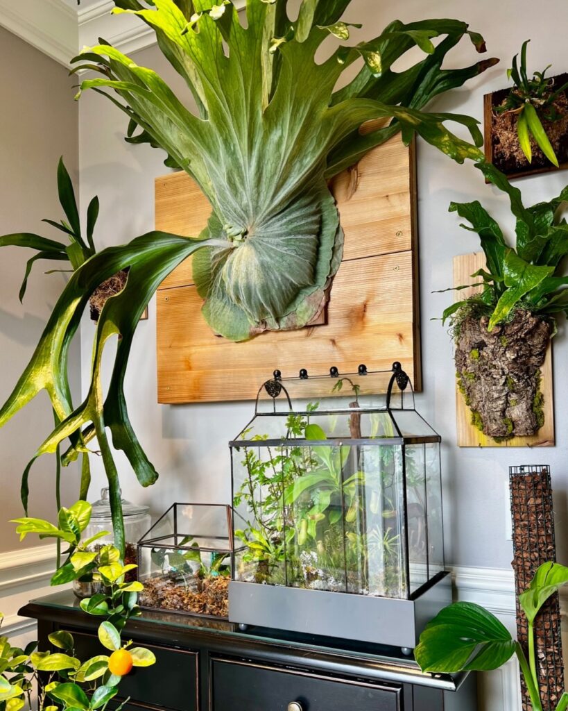 Its a great way to bring texture to a bland wall and makes your plants part of the architecture, not just the decor.