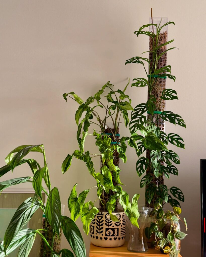 And you can mix things uptall leafy ones, something spiky, maybe a trailing vine all in one spot. Vary the pot colours or keep them all neutral, depending on your vibe.