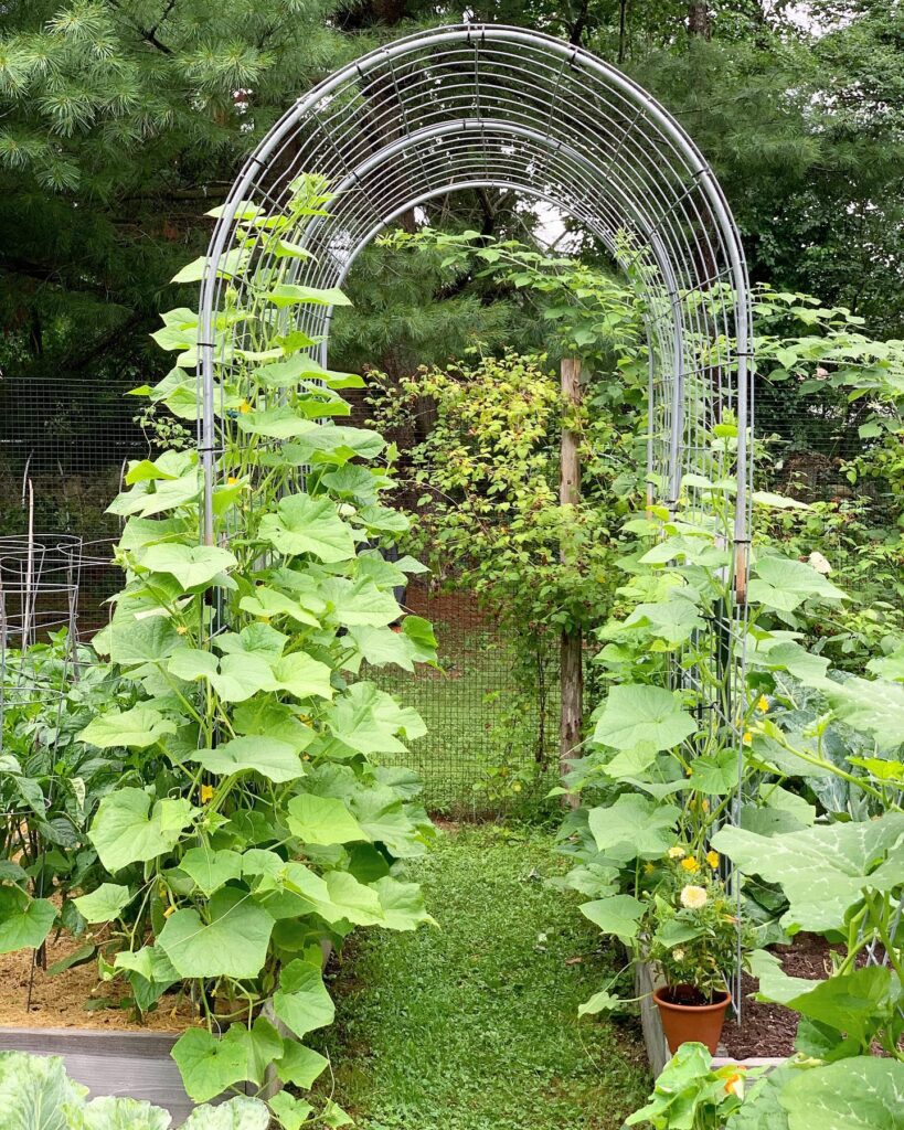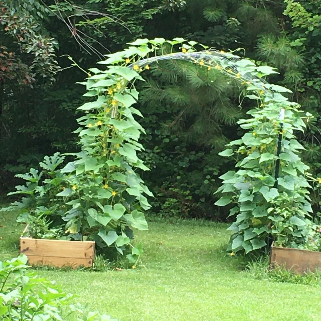 The ultimate cucumber catwalk. This tall arched trellis turns your garden path into a lush green tunnel. Its like walking through a veggie fairy tale.