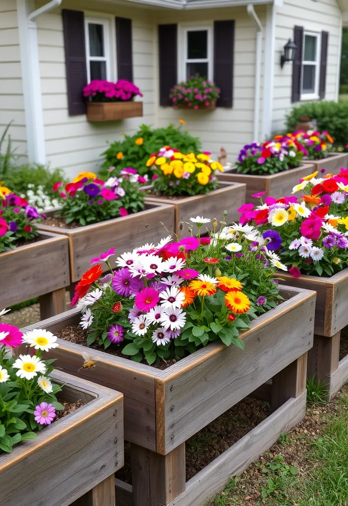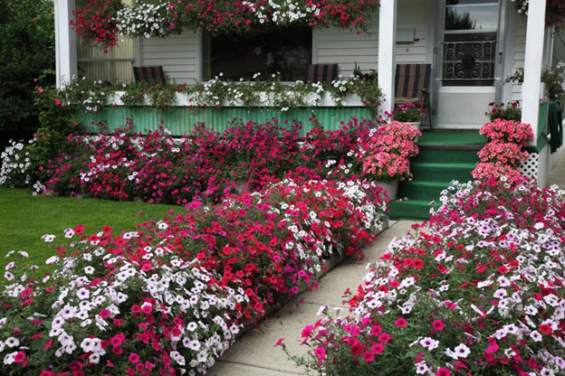 Line your beds with stacked stone and fill with colourful seasonal annuals like petunias and pansies. Search: