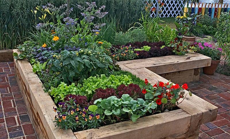 Frame a corner of your porch or entrance with an L-shaped bedworks well with mixed heights.