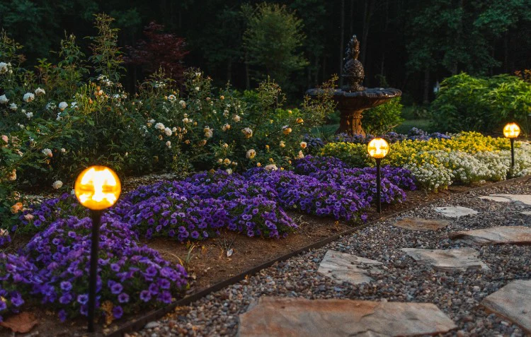 Add a magical touch at night with solar garden stakes or spotlights tucked in your flower bed.