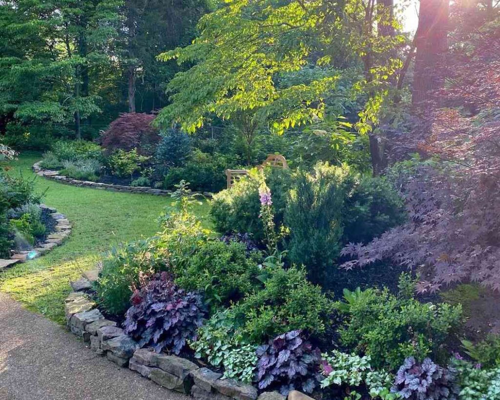 Low effort long-term solutionplant once, enjoy for years. Include shrubs like azaleas or lavender.