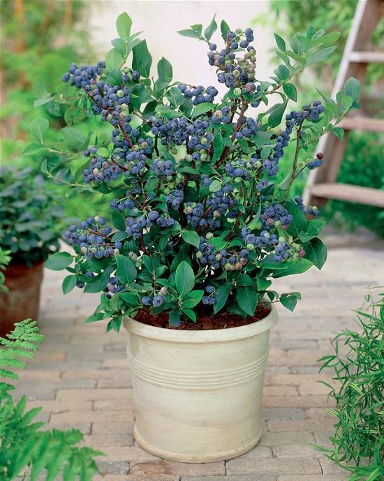 Plant Blueberries in containers and place them in a sunny or sheltered spot. They offer a sweet and tangy taste, making them perfect for smoothies!