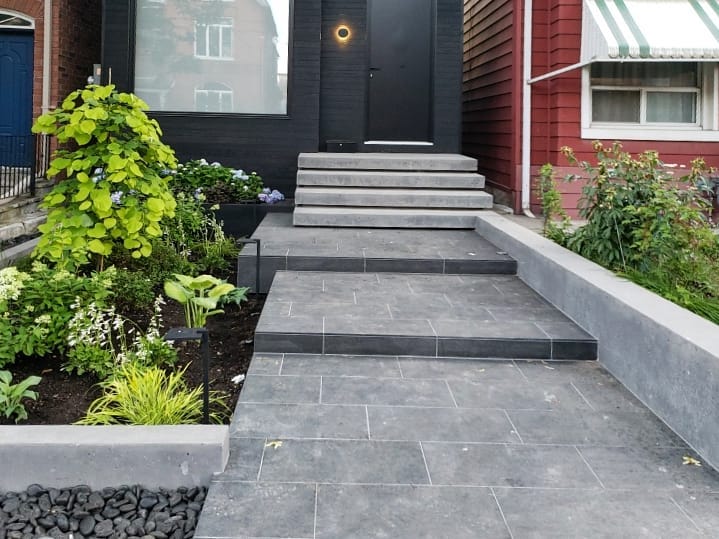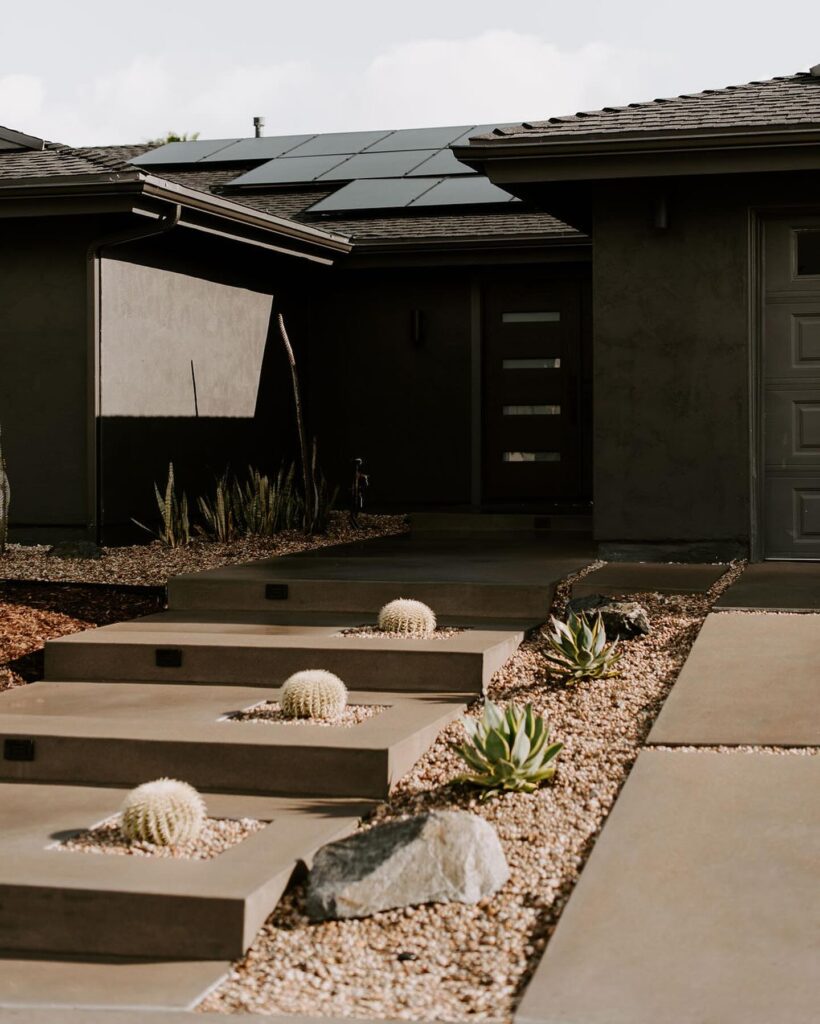 Pavers are big in modern landscapingespecially those big square concrete ones with gravel in between.