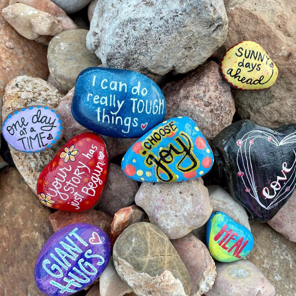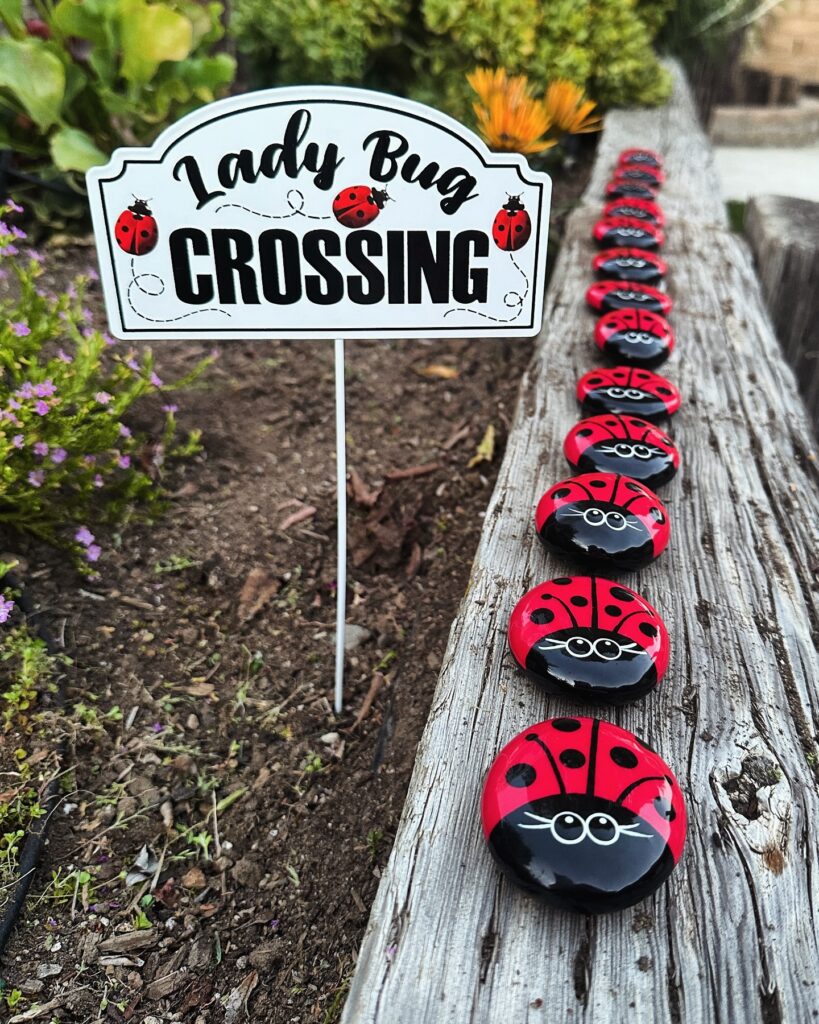 If youve got kids around, hand them some paint and let them loosetheres something adorable about finding a ladybug rock or a misspelled word tucked under a fern.