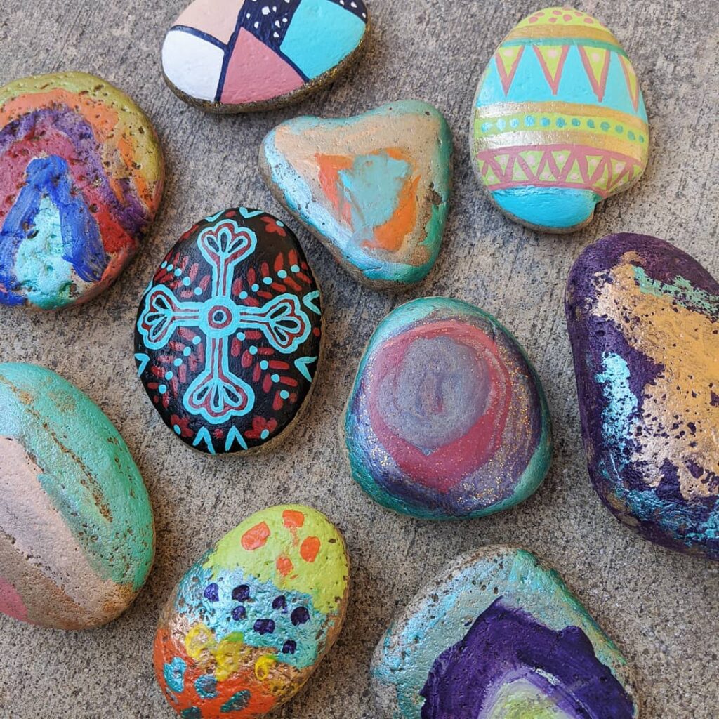 Paint a few pebbles, stack some stones, lay out a spiral in a shady corner. Whether you go for colorful painted pieces or more natural stone arrangements, it all adds a kind of magic.