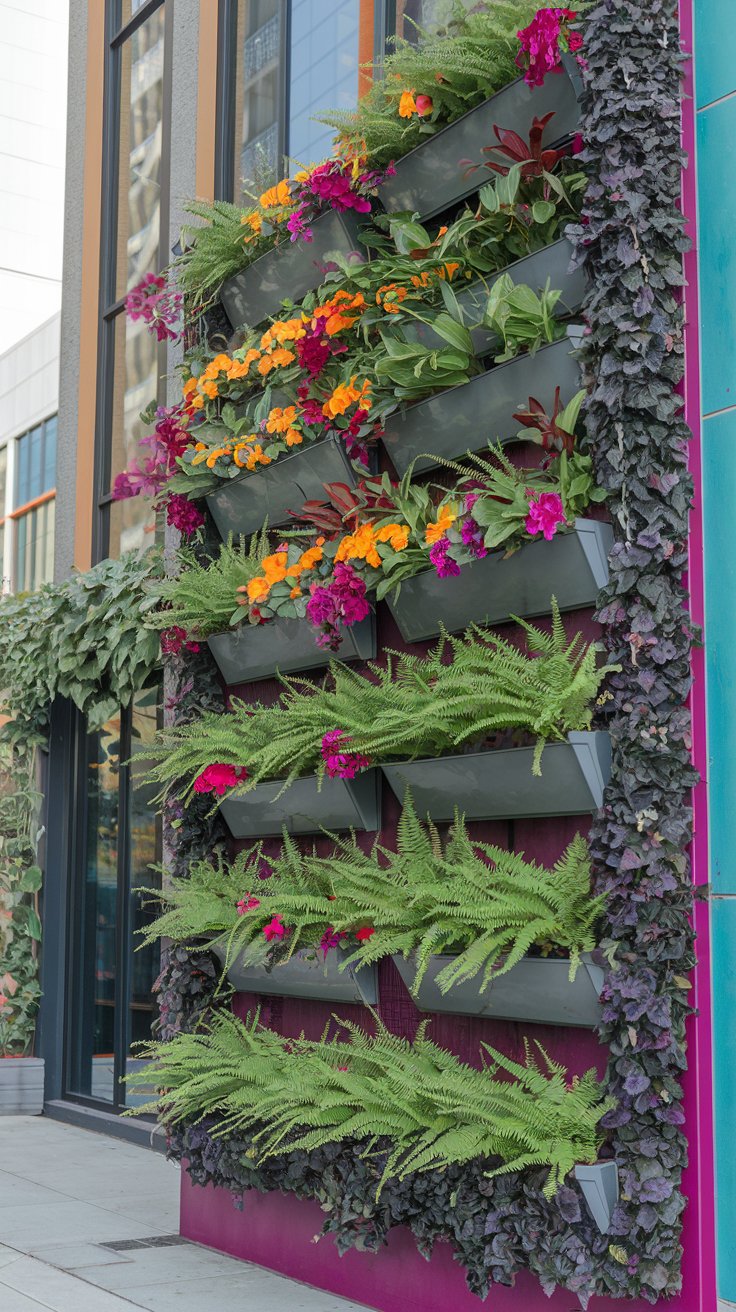 Turn an urban wall into a vibrant vertical garden filled with ferns, ivy, and colorful flowers. This eye-catching feature not only enhances your outdoor space but also improves air quality. Use modular planters for flexibility and plant a mix of greenery and blooms for contrast. A living wall is a statement piece that brings life and beauty to any city setting.