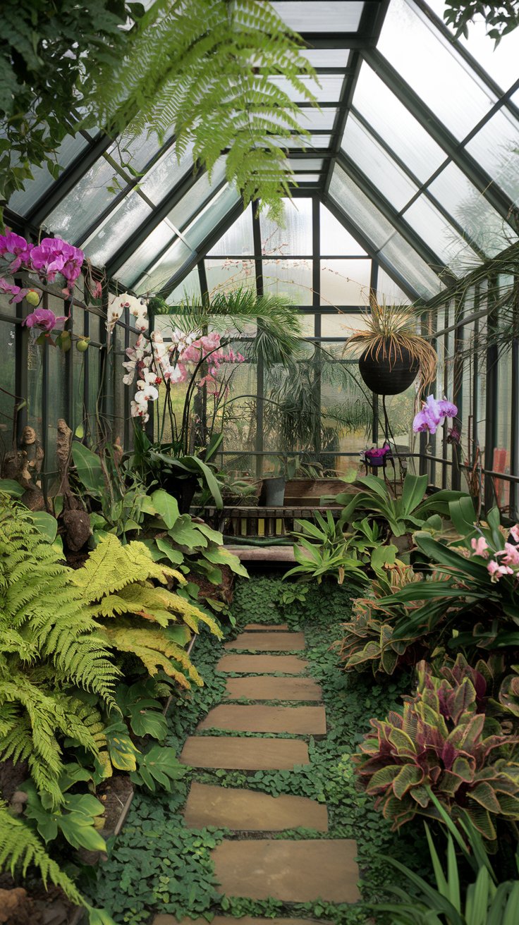 Create a unique indoor-outdoor garden enclosed by glass panels. Fill the space with ferns, orchids, and a small seating area for a lush, private escape. The glass enclosure protects plants while offering clear views of the greenery. Add soft lighting for a magical touch, making it a perfect spot to unwind.