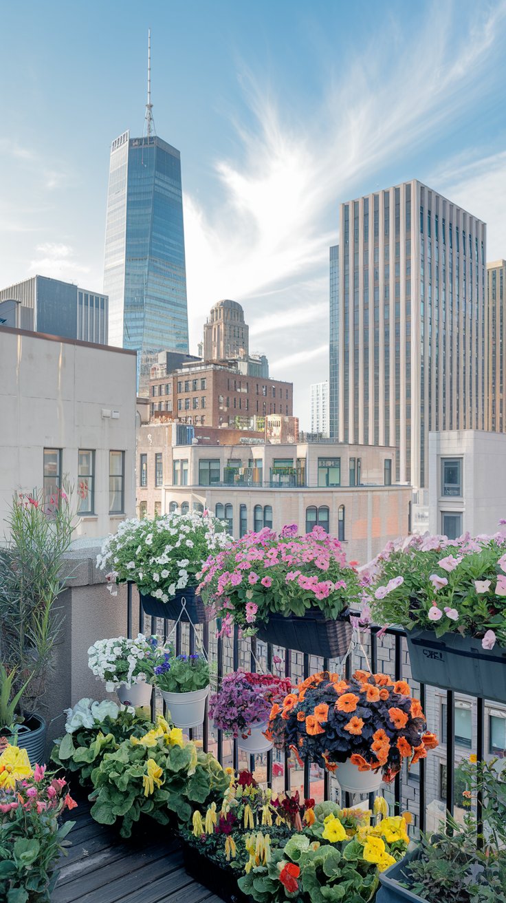 Transform your balcony into a colorful retreat with hanging baskets overflowing with vibrant blooms. This setup brings nature closer, even in the busiest urban environments. Choose flowers like petunias or begonias for their long-lasting blooms and vivid colors. Hanging baskets save floor space, making your balcony feel spacious and full of life.