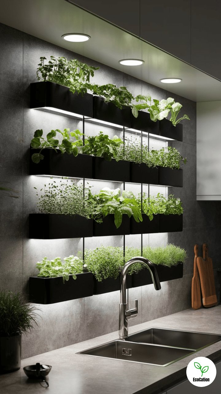 Bring your herb garden into the heart of your home your kitchen! Install a vertical planter or shelf system on a kitchen wall, near a window if possible. This setup ensures your herbs are always within reach when cooking, and it adds a touch of greenery to your culinary space. Opt for easy-to-grow herbs like basil, parsley, and chives for a fresh supply year-round.