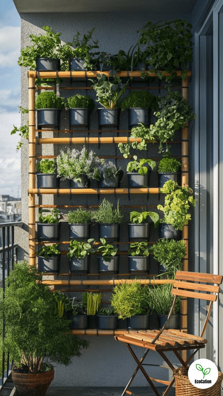 Bamboo is not only sustainable but also adds a touch of exotic elegance to your herb garden. Create a vertical frame using bamboo poles, and attach small pots or containers. This lightweight and eco-friendly option works well in both indoor and outdoor spaces, bringing a zen-like calm to your garden.